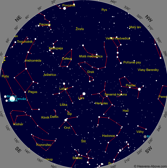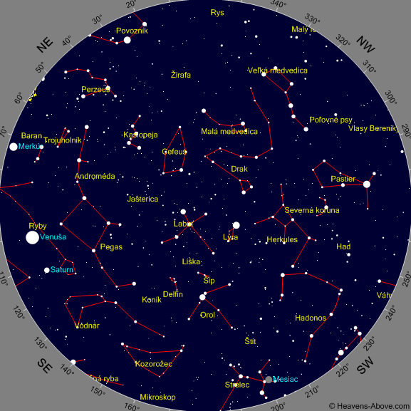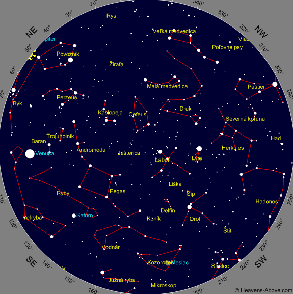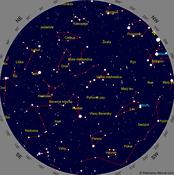 Mapky znázorňujú polohu planét na rannej a večernej oblohe pre stred príslušného mesiaca: