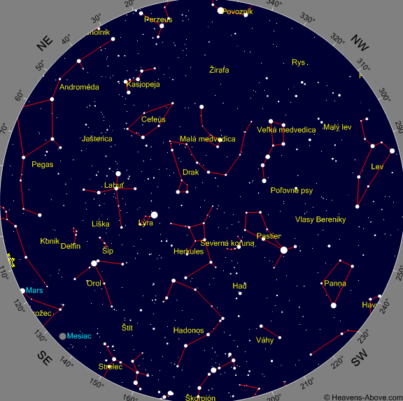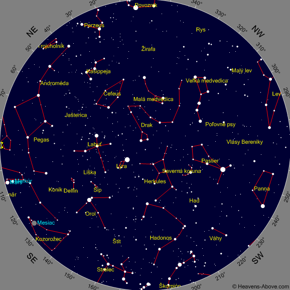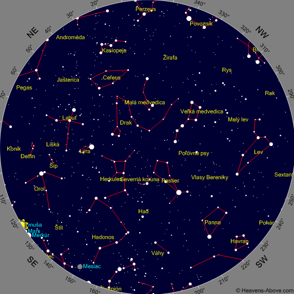 Mapky znázorňujú polohu planét na rannej a večernej oblohe pre stred príslušného mesiaca:
