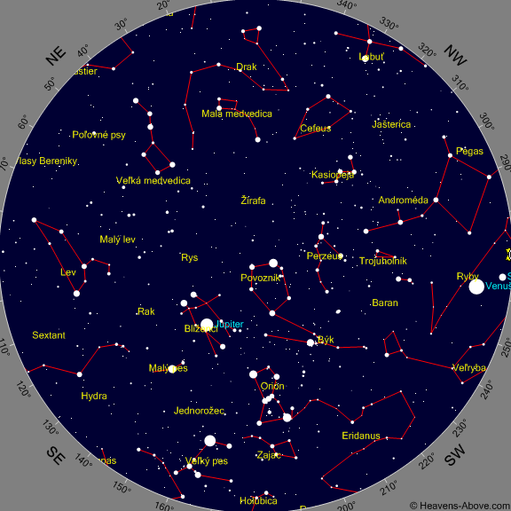 Január – večerná obloha