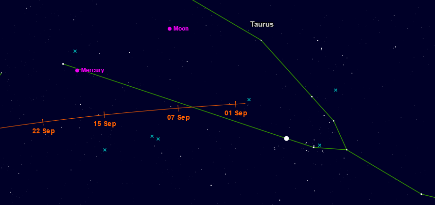 Merkúr – bude v prvých dvoch dekádach júla pozorovateľný ráno pred východom Slnka. V auguste je nepozorovateľný, v septemberi zapadá tesne po západe Slnka, podmienky na jeho pozorovanie nie sú priaznivé.