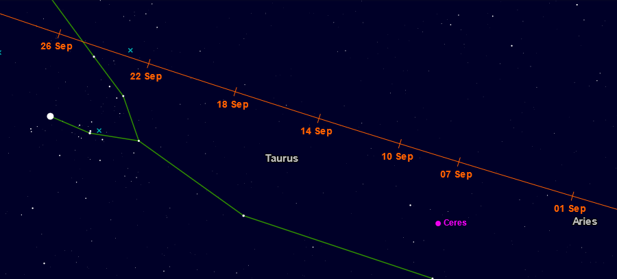 Periodická kométa 67P/Čurjumov-Gerasimenko patrí do Jupiterovej rodiny komét. Objavená bola K.I. Čurjumovom a S.I. Gerasimenkovou 20. septembra 1969. Perihéliová vzdialenosť je 1,24 au a obežná doba 6,44 roka. V rokoch 2014-2016 bola intenzívne skúmaná z bezprostrednej blízkosti sondou Európskej kozmickej agentúry Rosetta. Má veľmi nepravidelný tvar, skladá sa z dvoch lalokov. Väčší lalok má rozmery 4,1 km × 3,3 km × 1,8 km, menší lalok 2,6 km × 2,3 km × 1,8 km. V roku 2021 prejde perihéliom 2. novembra, jasnejšia ako 12m bude od začiatku septembra do konca roka. V septembri bude zo Slovenska viditeľná v druhej polovici noci. Efemerida pre 0 hodín UT: