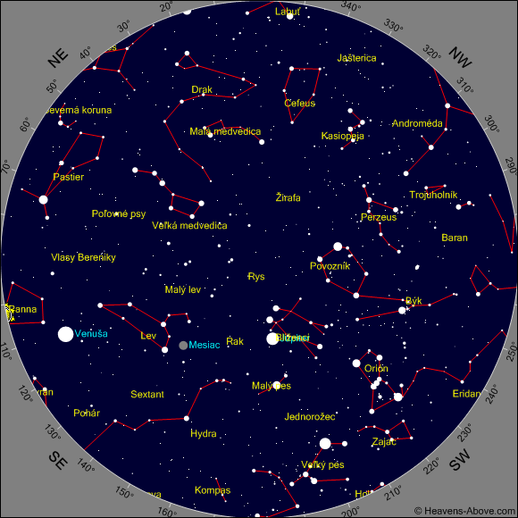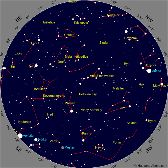 Mapky znázorňujú polohu planét na rannej a večernej oblohe pre stred príslušného mesiaca: