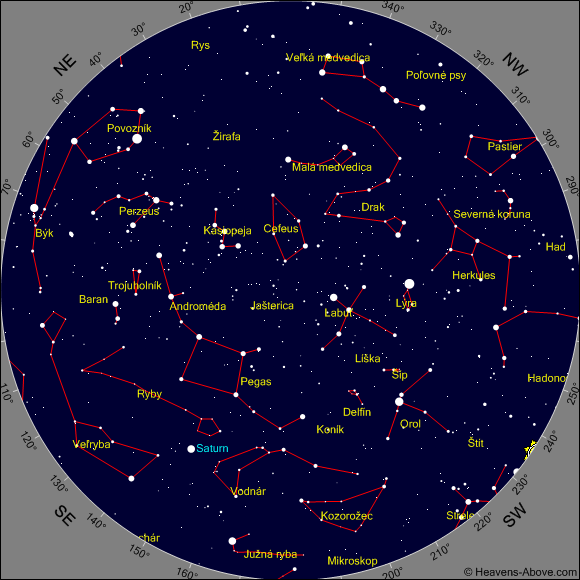 Saturn – podmienky na pozorovanie Saturna budú výborné. V októbri je na oblohe celú noc, v novembri zapadá 2 hodiny po polnoci a v decembri okolo polnoci.