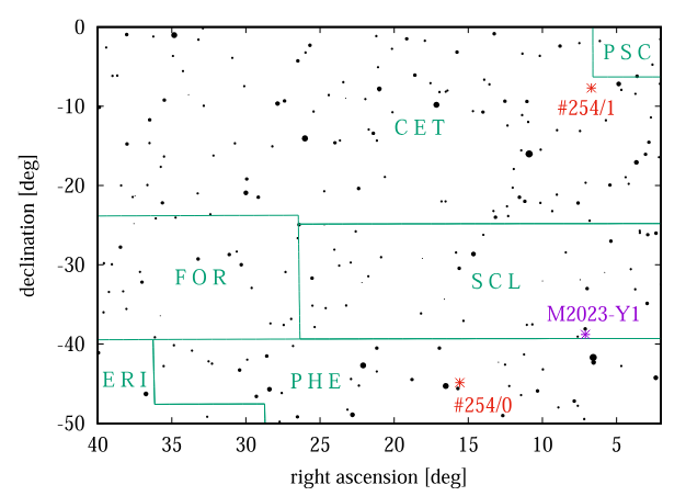 Poloha riešení radiantov meteorického roja Phoenicidy na oblohe