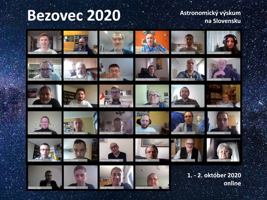V roku 2020 sa malo stretnutie astronómov na Bezovci konať začiatkom júna 2020. Všetko však zmenilo celosvetové šírenie sa koronavírusovej infekcie COVID-19. Vzhľadom na vyše päťdesiatročnú tradíciu konferencií na Bezovci sme sa rozhodli nezrušiť tohtoročné stretnutie úplne a len ho posunúť na jeseň 2020 s nádejou, že v tom čase už budú možné aj takéto osobné stretnutia. Ani jesenný termín však nebol pre konferenciu priaznivý. Keďže cieľom týchto stretnutí je spájať hlavne mladú astronomickú komunitu na Slovensku, presunuli sme konferenciu do online priestoru. Konferencia Bezovec 2020 – Astronomický výskum na Slovensku sa konala v dňoch 1. – 2. októbra 2020 a na jej príprave sa podieľala aj Univerzita P. J. Šafárika v Košiciach a Slovenská ústredná hvezdáreň v Hurbanove.