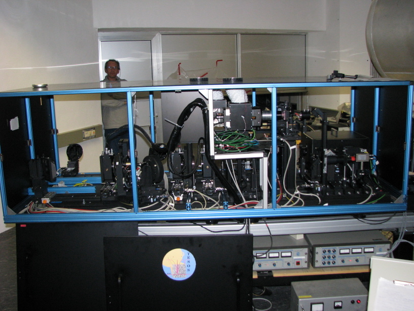 VTT: tank containing the adative optics KAOS (left); VIS/IR beamsplitter below the KAOS tank separating VIS light for the TESOS instruments and context imaging and IR light for the TIP spectrometer (right).