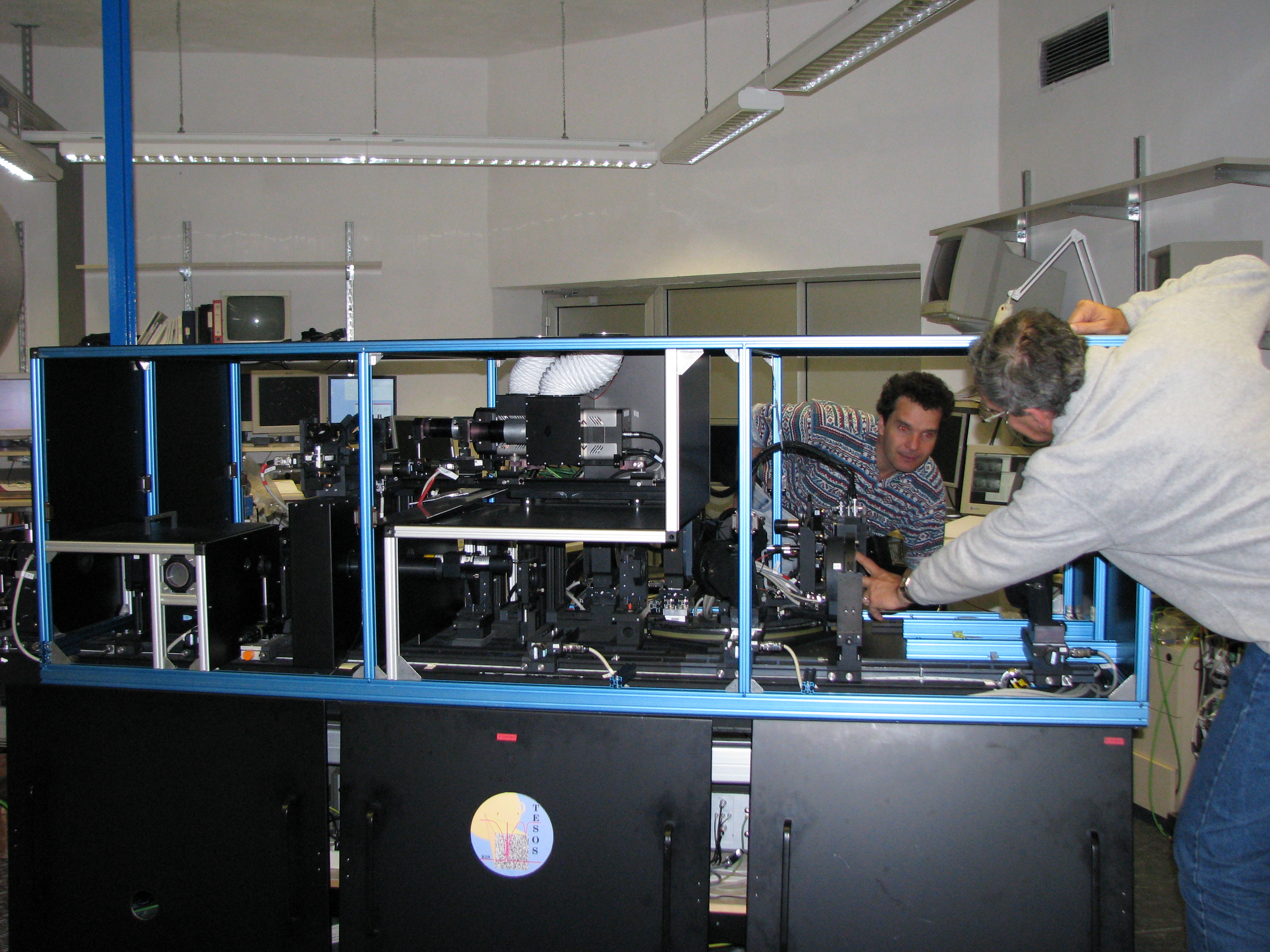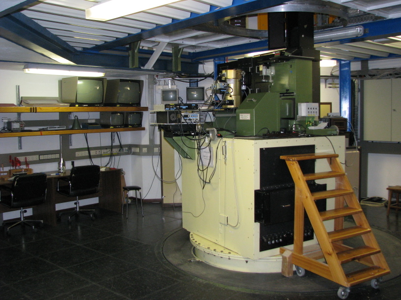 VTT: the TESOS spectrometer with its open side wall: right side (left), left side with Ales Kucera and Julius Koza (right).