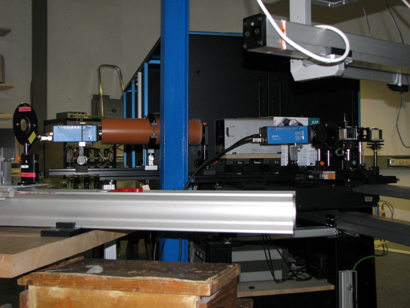 VTT: context imaging setup in front of the TESOS spectrometer (left): from left to right - optics reflecting some light for the context imaging separating it for G-band and H-alpha channels, G-band filter with the PCO camera, Carl Zeiss H-alpha Lyot filter, tube covering the light beam going to another PCO camera for H-alpha recording; the same from other side (right): from left to right - G-band filter optics reflecting light for the context imaging, optics changing the beam focus for the H-alpha channel, LCD crystal package of the VIP, holder of the TESOS entrance aperture.
