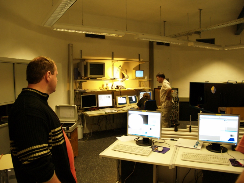 Observations in progress - monitors and Helmold Schleicher, Peter Gomory, Jan Rybak (left); KAOS tank, TESOS, and Jan Rybak (right).