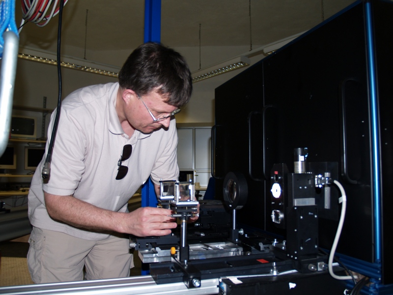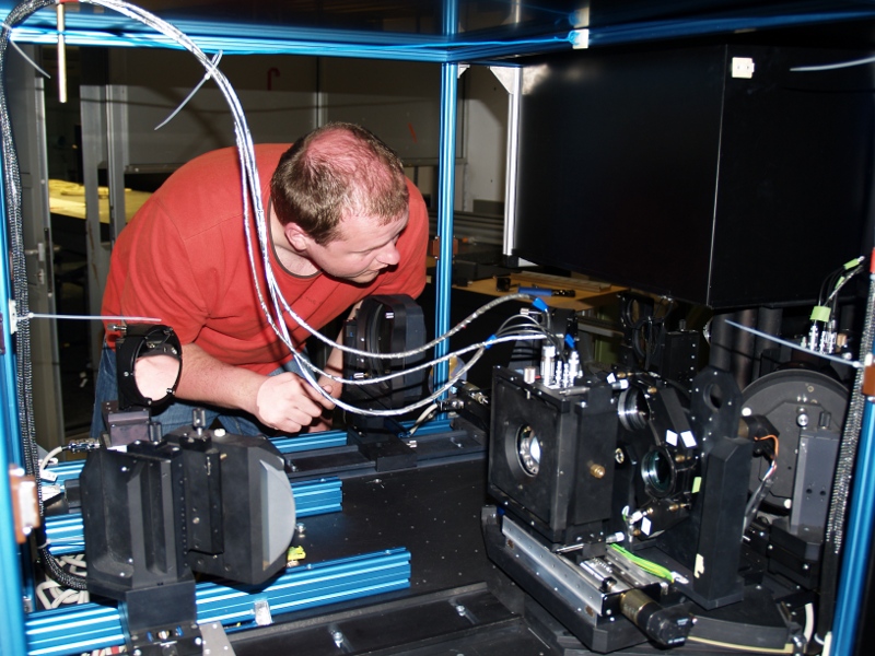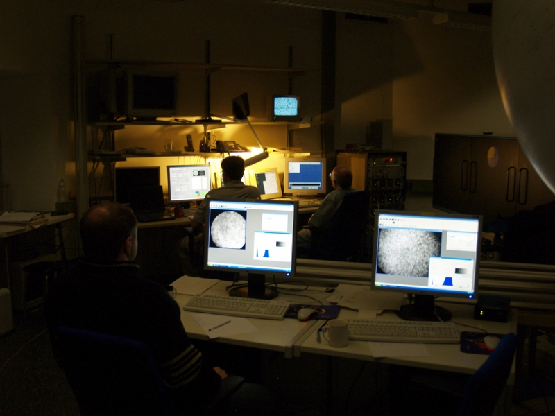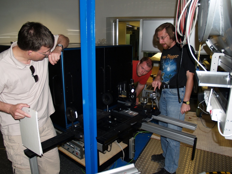 Christian Beck, Peter Gomory, and Jan Rybak adjusting the setup of the imaging system (left,right).