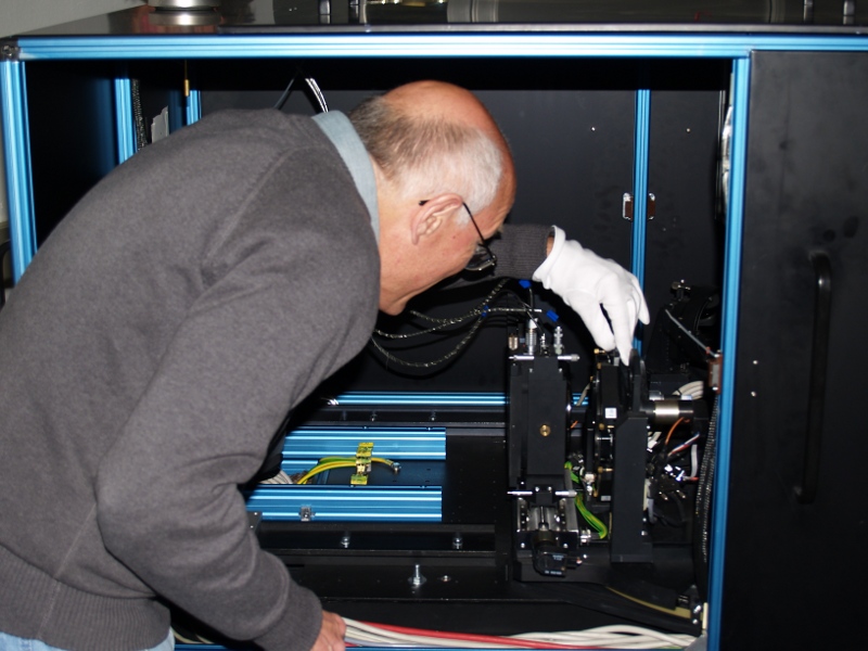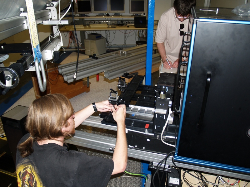 Ales Kucera (left) and Peter Gomory (right) checking the TESOS alignment.