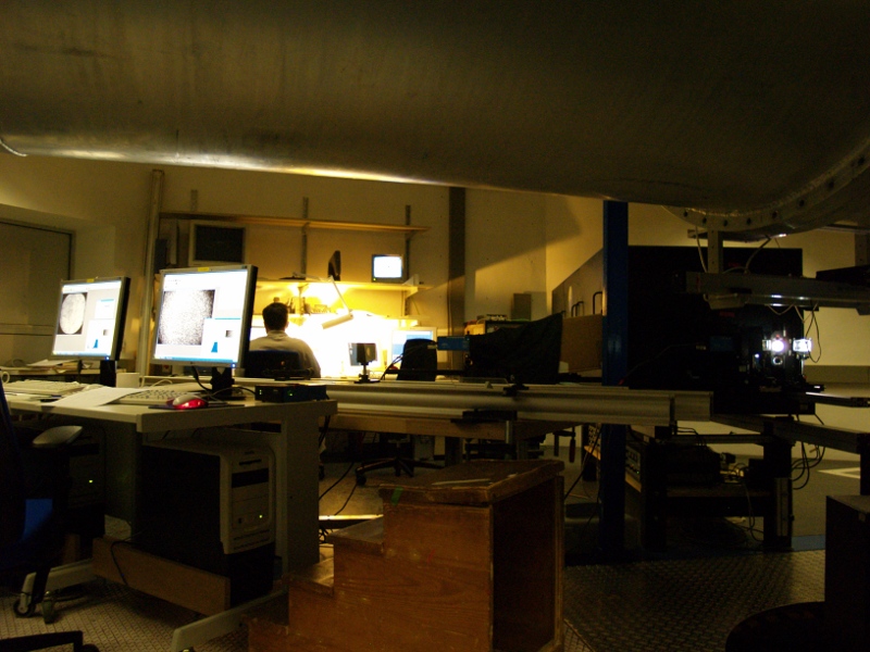 The setup of the imaging system before cleaning and covering (left); Helmold Schleicher performing the TESOS alignment tests (right).