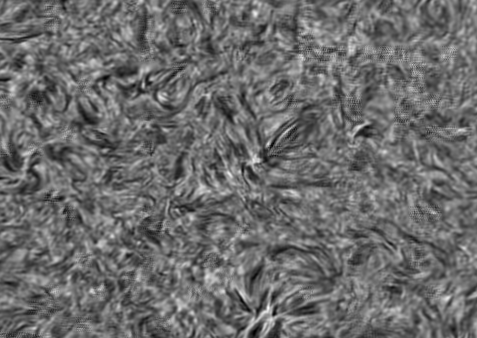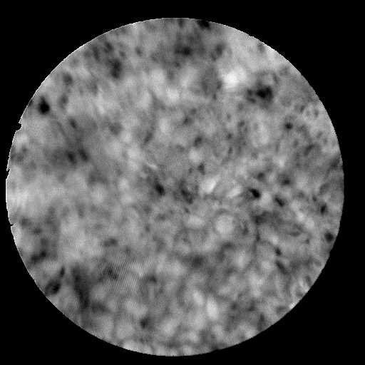 H alpha image of the disk center which was taken on 24.4.2010. The images are speckled using the KISIP speckle code. Telescope: VTT, post-focal instrumentation: ZEISS 1nm filter, additional optics to devide and focus the beam in front of the TESOS spectrometer, PCO 4000 camera.
